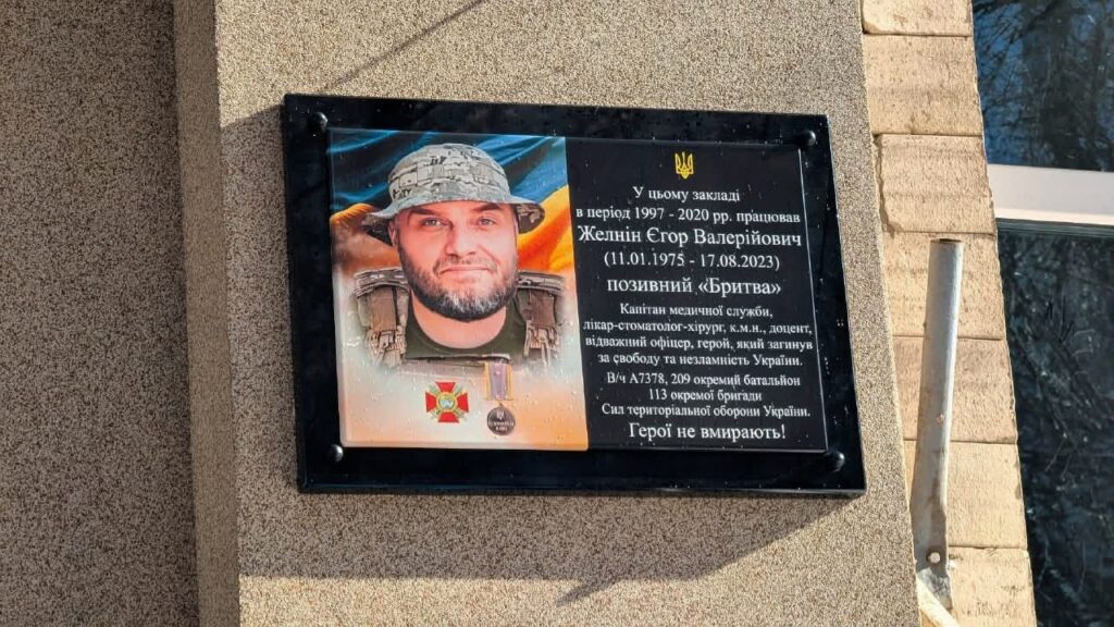 Єгор Желнін до повномасштабного вторгення рф працював лікарем-стоматологом в обласній стоматологічній поліклініці, де і відкрили меморіальну дошку.