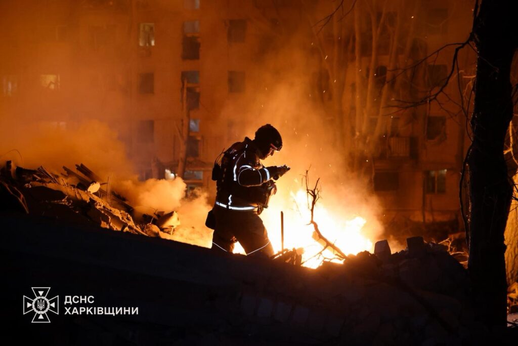 Президент України Володимир Зеленський наголосив, що з ночі триває розбір завалів житлового будинку в Харкові після російського удару балістичною ракетою.